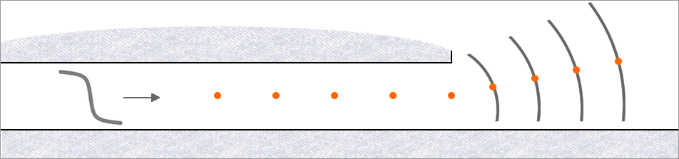 Inside the tunnel, greatest interest is on the incident wavefront approaching the portal and reflecting back along the tunnel. The output locations are at distances of Lwave/8, 2Lwave/8, 3Lwave/8 and 4Lwave/8 from the portal plane. Here, Lwave denotes the length of the wavefront; it is the product of the wavefront duration and the speed of sound (deemed to be 340 m/s).